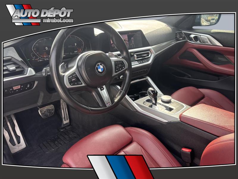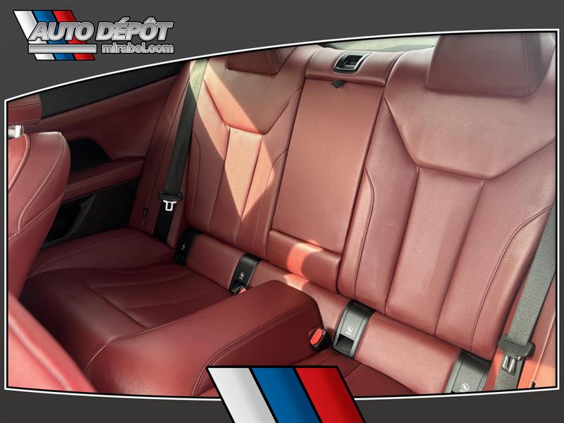 Finished in black with a bold red interior this used 2023 BMW 4 Series 430i xDrive Coupe with M Sport Package leather and sunroof brings premium style and everyday usability together in one confident package. Sold by Auto Dépôt Mirabel in Mirabel it has 25396 km and pairs a 2.0 L unleaded engine with an 8-speed automatic transmission for smooth responsive driving in every season. With xDrive all-wheel drive this 2023 BMW 4 Series 430i xDrive Coupe feels ready for Canadian roads from wet highways to winter mornings. The M Sport Package adds a more athletic look and road feel while performance tires help deliver sharper grip when conditions are right. For daily convenience features like remote starter push button start and automatic door locks make every trip easier whether you are heading to work or leaving for a weekend drive. FEATURES OF THE 4 Series 430i xDriveCoupe MpackLeatherSunroof »» M Sport Package for sportier presence »» Panoramic glass sunroof for open-air feel »» xDrive all-wheel drive for four-season confidence »» Ambient lighting package enhances cabin mood ADVANCED SAFETY FEATURES »» Anti-lock braking system helps maintain control »» Stability control supports confident cornering »» Blind spot monitor aids safer lane changes »» Side impact airbags add occupant protection PERFORMANCE AND EFFICIENCY »» 2.0 L unleaded engine balances power »» 8-speed automatic transmission shifts smoothly »» Dual shift mode for manual-like control »» All-wheel drive improves traction in weather COMFORT AND CONVENIENCE »» Dual-zone automatic climate control for comfort »» Rear air conditioning helps keep passengers cool »» Heated front seats for cold mornings »» Memory seats save preferred driving position TECHNONOLGY AND CONNECTIVITY »» Navigation system helps plan every route »» Bluetooth integration supports hands-free calling »» Satellite radio adds more listening choices »» Steering wheel audio controls keep focus CARGO SPACE »» Rear trunk access makes loading simple »» Trunk suits daily bags and gear »» Coupe layout keeps items secure inside »» Practical space for weekend essentials WHAT OTHER OWNERS LIKE »» Confident all-wheel drive in all seasons »» Smooth refined 8-speed automatic shifting »» Easy-to-use navigation and Bluetooth features »» Comfortable cabin with strong climate control WARRANTY Warranty of fitness A - 6 months or 10000 km This 2023 BMW 4 Series 430i xDriveCoupe MpackLeatherSunroofs VIN is: WBA73AP09PCL21XXX.