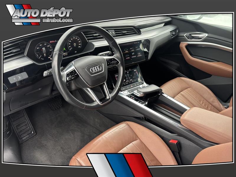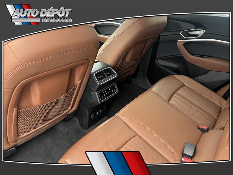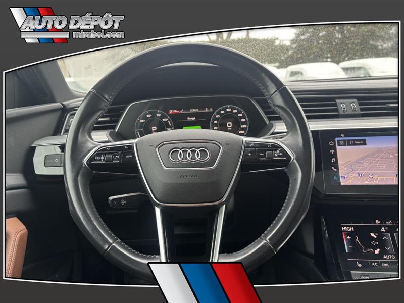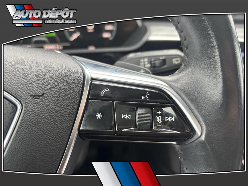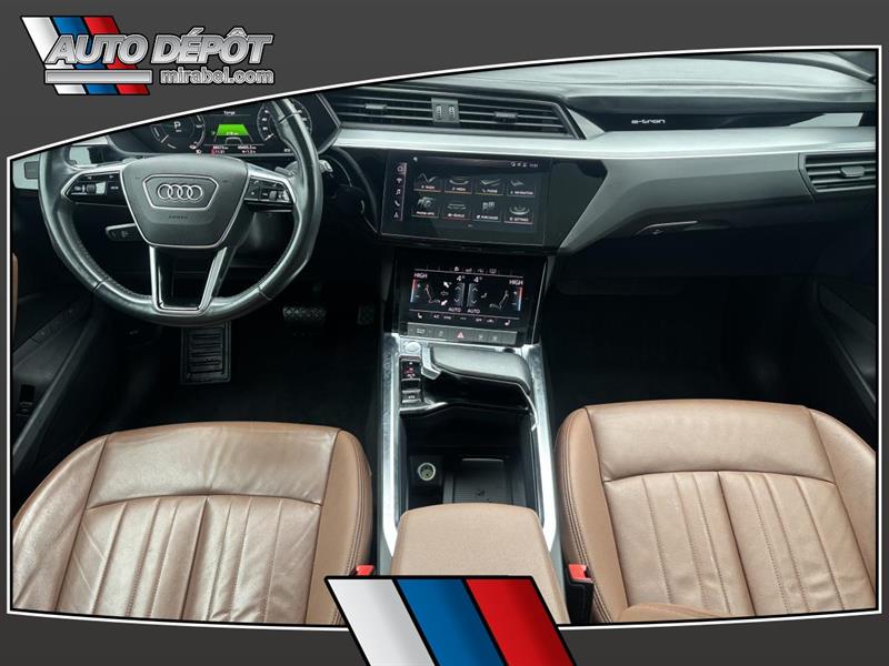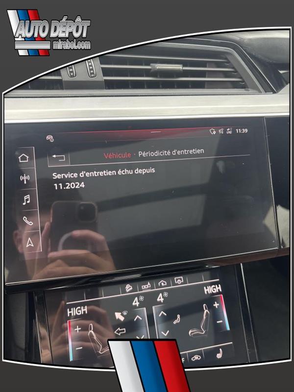 LAudi e-tron 2019 ProgressivQuattro usagé offert chez Auto Dépôt Mirabel à Mirabel est un VUS 100 % électrique pensé pour rouler en douceur en silence et avec une traction intégrale 4 roues motrices. Ce modèle blanc avec intérieur brun affiche 89 477 km 4 portes et une transmission automatique. CARACTÉRISTIQUES DU VÉHICULE ÉLECTRIQUE »» Motorisation 100 % électrique conduite silencieuse »» Freinage régénératif pour récupérer de lénergie »» Indicateurs dénergie au tableau de bord »» Recharge à domicile ou sur bornes publiques GARANTIE »» Garantie de bon fonctionnement C - 1 mois ou 1 700 km CARACTÉRISTIQUES DE SÉCURITÉ AVANCÉES »» Freins antiblocage (ABS) »» Contrôle de stabilité électronique »» Surveillance des angles morts »» Surveillance de la pression des pneus PERFORMANCE ET EFFICACITÉ »» Transmission automatique accélération sans à-coups »» Traction 4 roues motrices pour quatre saisons »» Suspension pneumatique à hauteur ajustable »» Suspension réglable selon la route CONFORT »» Climatisation avant à deux zones »» Climatisation arrière avec contrôle dédié »» Siège conducteur électrique avec support lombaire »» Sièges avant chauffants et mémoires TECHNOLOGIE ET CONNECTIVITÉ »» Système de navigation (GPS) intégré »» Intégration Bluetooth pour appels et audio »» Commandes audio au volant »» Point daccès WiFi et radio satellite ESPACE DE CHARGEMENT »» Hayon électrique avec accès au coffre »» Ouverture à distance du coffre »» Couvre-bagage inclus »» Accès au coffre arrière simplifié RÉCOMPENSES ET RECONNAISSANCES APPRÉCIÉ DES AUTRES PROPRIÉTAIRES »» Conduite très silencieuse en ville »» Réponse immédiate à laccélération »» Confort sur longues distances »» Stabilité rassurante en conditions difficiles Au quotidien lAudi e-tron 2019 ProgressivQuattro se distingue par sa conduite 100 % électrique sa traction intégrale et ses équipements pratiques. On retrouve aussi des détails appréciés comme le toit panoramique en verre le toit ouvrant les vitres teintées la caméra de recul les phares à DEL et les phares automatiques. Les rétroviseurs chauffants électriques escamotables et à mémoire ajoutent un côté pratique en hiver comme au stationnement. Ce modèle propose une ambiance soignée grâce au pack déclairage ambiant au rétroviseur intérieur électrochromatique et aux miroirs de courtoisie éclairés conducteur et passager. Pour la sécurité familiale il inclut aussi des serrures de sécurité enfant des coussins gonflables avant latéraux et latéraux de tête ainsi quun capteur de présence passager pour coussin gonflable. LAudi e-tron 2019 ProgressivQuattro est disponible dès maintenant chez Auto Dépôt Mirabel à Mirabel. Le NIV de ce Audi e-tron ProgressivQuattro 2019 est le WA1AAAGE5KB016XXX .