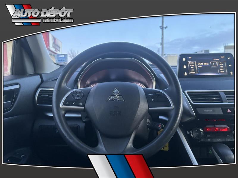 Le Mitsubishi Eclipse Cross ES S-AWC 2020 offert chez Auto Dépôt Mirabel à Mirabel est un VUS usagé noir avec intérieur gris conçu pour affronter nos routes avec sa traction intégrale S-AWC et sa transmission automatique. Il est animé par un moteur essence 15 L et affiche 191 224 km à lodomètre. CARACTÉRISTIQUES DE »» VUS 4 portes couleur extérieure noir »» Intérieur gris configuration pratique au quotidien »» Traction intégrale S-AWC à 4 roues motrices »» Transmission automatique conduite simple en ville GARANTIE »» Garantie légale seulement »» Garantie dusage »» Garantie de durée raisonnable »» Garantie contre les vices cachés CARACTÉRISTIQUES DE SÉCURITÉ AVANCÉES »» Freins antiblocage (ABS) »» Contrôle de stabilité »» Coussins gonflables avant conducteur et passager »» Coussins latéraux et rideaux latéraux PERFORMANCE ET EFFICACITÉ »» Moteur essence 15 L »» Traction intégrale pour meilleure motricité »» Transmission à variation continue (TVC) »» Direction assistée pour manoeuvres plus faciles CONFORT »» Climatisation avant avec contrôle automatique température »» Sièges avant chauffants »» Volant réglable avec commandes audio »» Vitres électriques et vitres teintées TECHNOLOGIE ET CONNECTIVITÉ »» Intégration Bluetooth pour appels et audio »» Radio satellite et radio HD »» Caméra de recul pour stationnement »» Phares automatiques pour éclairage simplifié ESPACE DE CHARGEMENT »» Accès au coffre arrière »» Dégivreur de vitre arrière »» Pneu de secours inclus »» Verrouillage automatique des portes APPRÉCIÉ DES AUTRES PROPRIÉTAIRES »» Traction intégrale rassurante lhiver »» Position de conduite surélevée bonne visibilité »» Sièges avant chauffants utiles au froid »» Caméra de recul pratique au quotidien Ce Mitsubishi Eclipse Cross ES S-AWC 2020 mise sur des équipements concrets et utiles: traction intégrale caméra de recul sièges avant chauffants phares automatiques et connectivité Bluetooth. Un choix logique pour quelquun qui veut un VUS polyvalent bien équipé et prêt à rouler disponible chez Auto Dépôt Mirabel à Mirabel. Le NIV de ce Mitsubishi Eclipse Cross ES S-AWC 2020 est le JA4AT3AA1LZ600XXX .