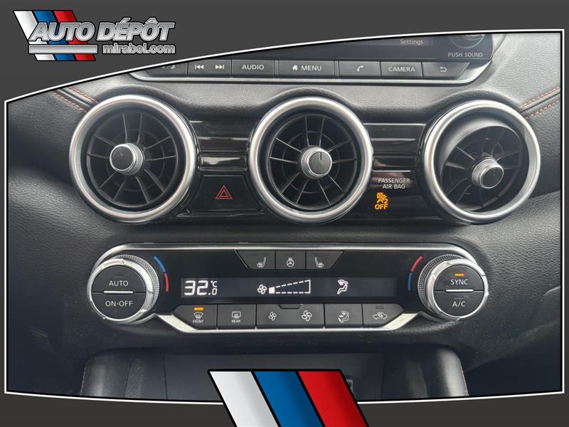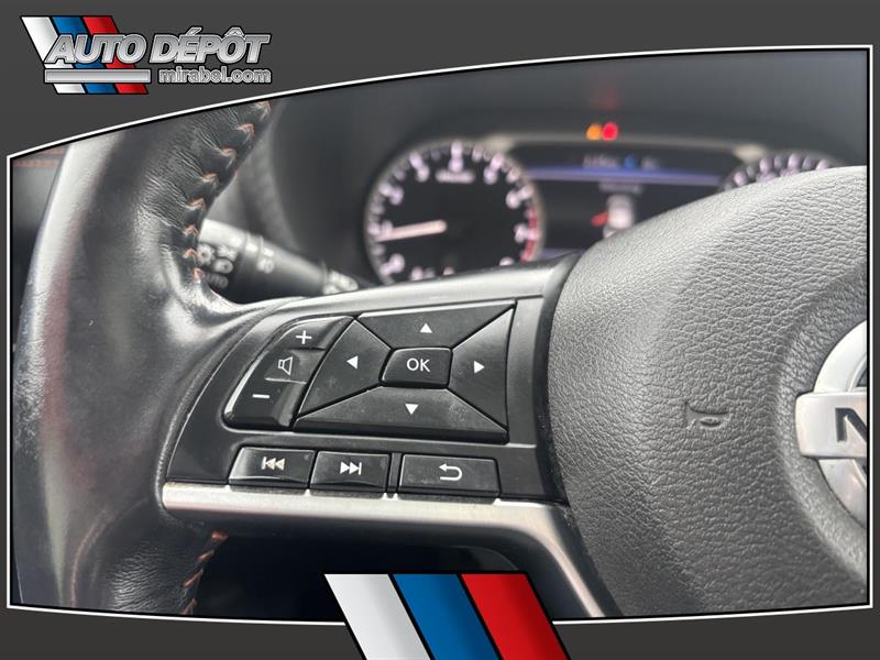 Le Nissan Sentra SR Midnight Edition 2021 usagé offert chez Auto Dépôt Mirabel à Mirabel se démarque par son style sport et sa présentation soignée. Avec sa couleur extérieure orange et son habitacle noir il propose une conduite simple et moderne appuyée par un moteur 20 L sans plomb une transmission automatique et une traction avant. Il affiche 94 880 km à lodomètre. CARACTÉRISTIQUES DU Sentra SR Midnight Edition »» Aileron arrière au style sport »» Phares à DEL et antibrouillard »» Toit ouvrant en verre »» Jantes et détails extérieurs noirci CARACTÉRISTIQUES DE SÉCURITÉ AVANCÉES »» Freins antiblocage (ABS) »» Contrôle de stabilité »» Coussin gonflable conducteur et passager »» Coussins latéraux et rideaux latéraux PERFORMANCE ET EFFICACITÉ »» Moteur 20 L sans plomb »» Transmission automatique à variation continue (TVC) »» Traction avant »» Différentiel à glissement limité CONFORT »» Climatisation avant à deux zones »» Contrôle automatique de la température »» Sièges avant chauffants »» Volant réglable et gainé de cuir TECHNOLOGIE ET CONNECTIVITÉ »» Intégration Bluetooth pour appels et audio »» Commandes audio au volant »» Radio satellite »» Caméra de recul ESPACE DE CHARGEMENT »» Coffre arrière avec accès depuis lhabitacle »» Ouverture à distance du coffre »» Verrouillage automatique des portes »» Pneu de secours inclus GARANTIE »» Garantie de bon fonctionnement B - 3 mois ou 5 000 km APPRÉCIÉ DES AUTRES PROPRIÉTAIRES »» Conduite stable et rassurante au quotidien »» Commandes simples et faciles à apprendre »» Bon confort avec sièges avant chauffants »» Visibilité arrière aidée par caméra Ce Nissan Sentra SR Midnight Edition 2021 combine une présentation distinctive et des équipements utiles au quotidien. Le démarreur à distance le démarrage par bouton-poussoir et le régulateur de vitesse ajoutent de la simplicité surtout lhiver et sur lautoroute. Les rétroviseurs chauffants avec clignotants les vitres électriques et les rétroviseurs électriques complètent un ensemble pratique pour la vie de tous les jours. Côté éclairage les phares automatiques et les phares à DEL contribuent à une bonne visibilité tandis que les phares antibrouillard aident lors des conditions plus difficiles. Pour la sécurité on retrouve aussi les serrures de sécurité enfant la surveillance de la pression des pneus et la surveillance des angles morts des aides concrètes pour les déplacements en ville comme sur la route. Le NIV de ce Nissan Sentra SR Midnight Edition 2021 est le 3N1AB8DV6MY213XXX .